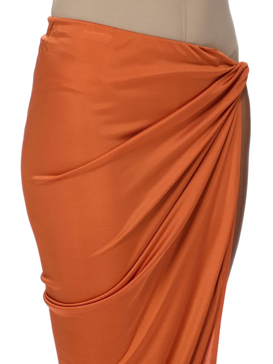 RICK OWENS FW25 CONCORDIANS HYDRA SKIRT IN ORANGESATIN VISCOSE JERSEY
