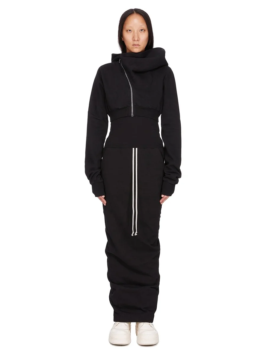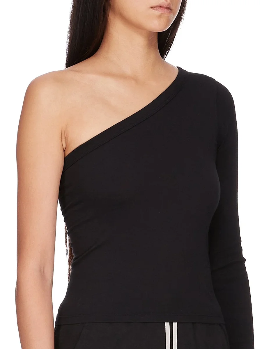 THIS ZIGGY T IS BELOW-WAIST LENGTH AND HAS AN ASYMMETRICAL, SINGLE SHOULDER NECKLINE THAT SCOOPS UNDER THE RIGHT ARM. IT HAS ONE LONG SLEEVE AND FEATURES THE SIGNATURE SINGLE SEAM RUNNING DOWN THE CENTRE BACK SPINE.