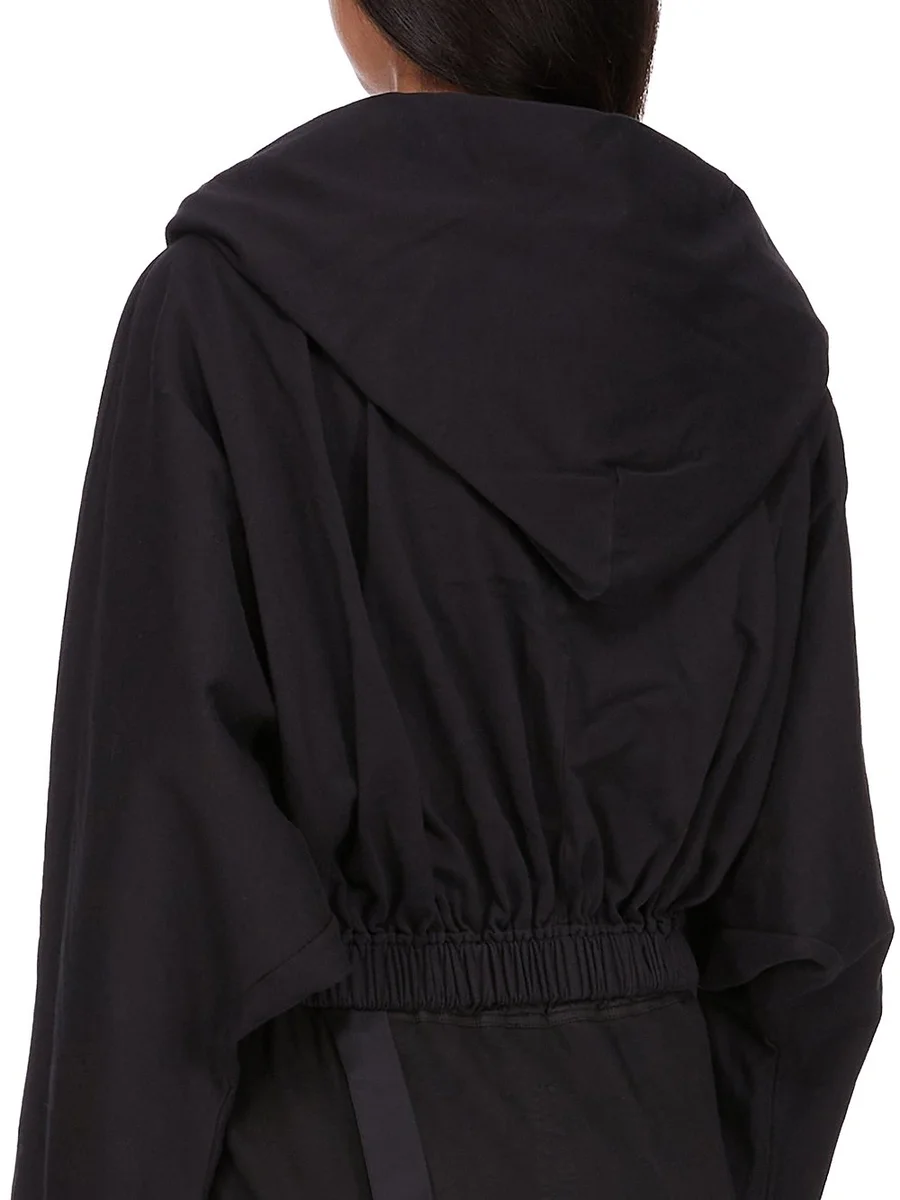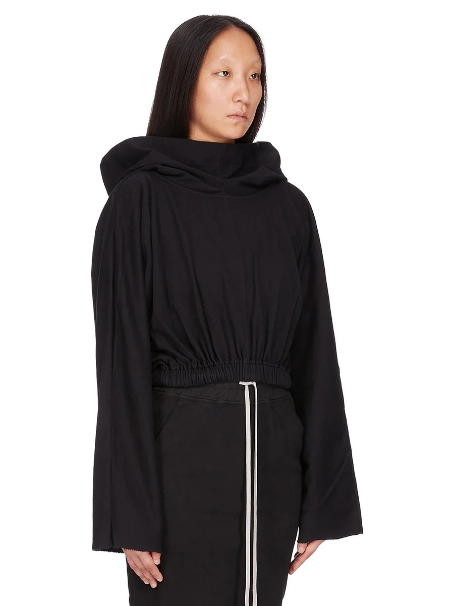DRKSHDW FW25 CONCORDIANS CROPPED HOODED TUNIC IN BLACK COMPACT HEAVY JERSEY