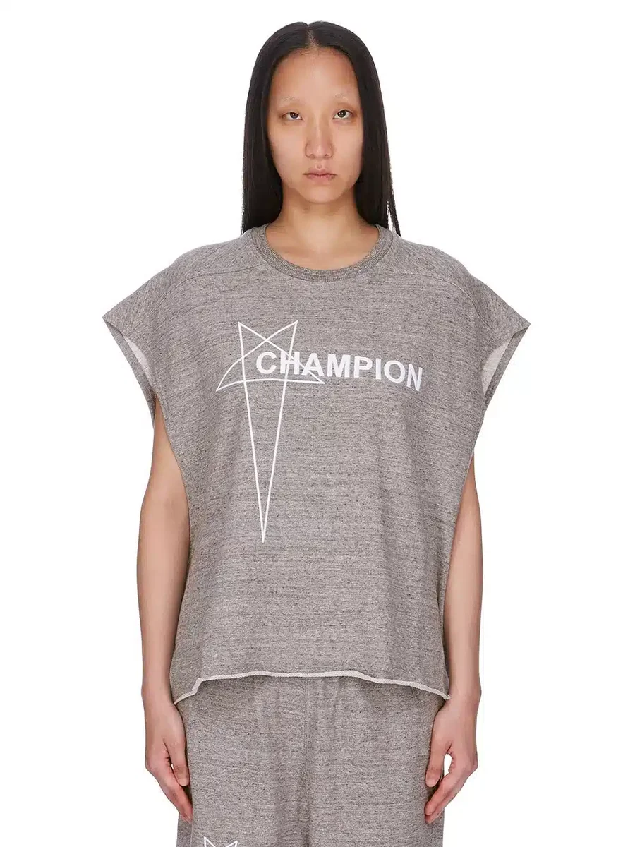 CHAMPION X RICK OWENS SS25 MICRO TATLIN T IN GREY MELANGE MELANGE FELPA JERSEY