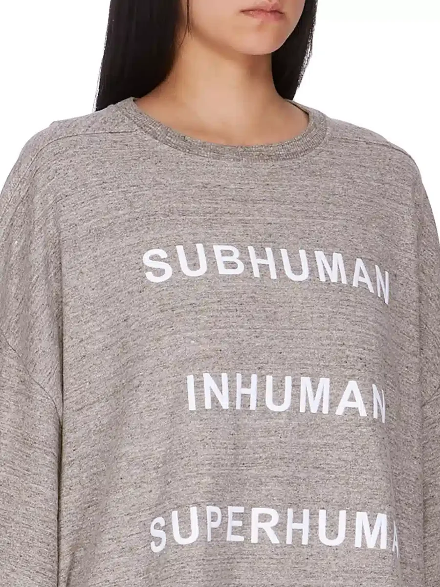 IT FEATURES A 3D EMBROIDERED SIGNATURE CHAMPION X RICK OWENS SUBHUMAN, INHUMAN, SUPERHUMAN, CHAMPION LOGO ON FRONT AND CHAMPION LOGO ON RIGHT SLEEVE.