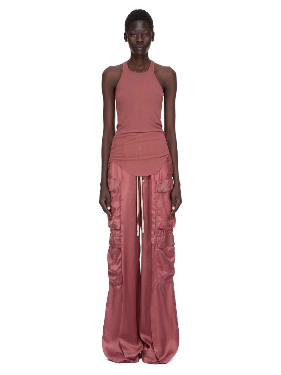 RICK OWENS FW25 CONCORDIANS BASIC RIB TANK IN ROSEWOOD VISCOSE SILK RIB JERSEY