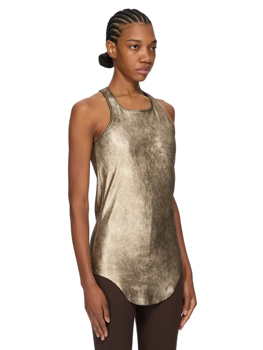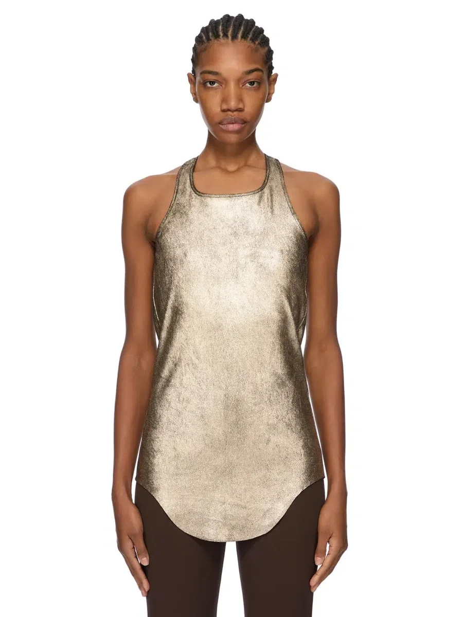RICK OWENS FW25 CONCORDIANS BASIC TANK IN GOLD METALLIC STRETCH LAMB LEATHER